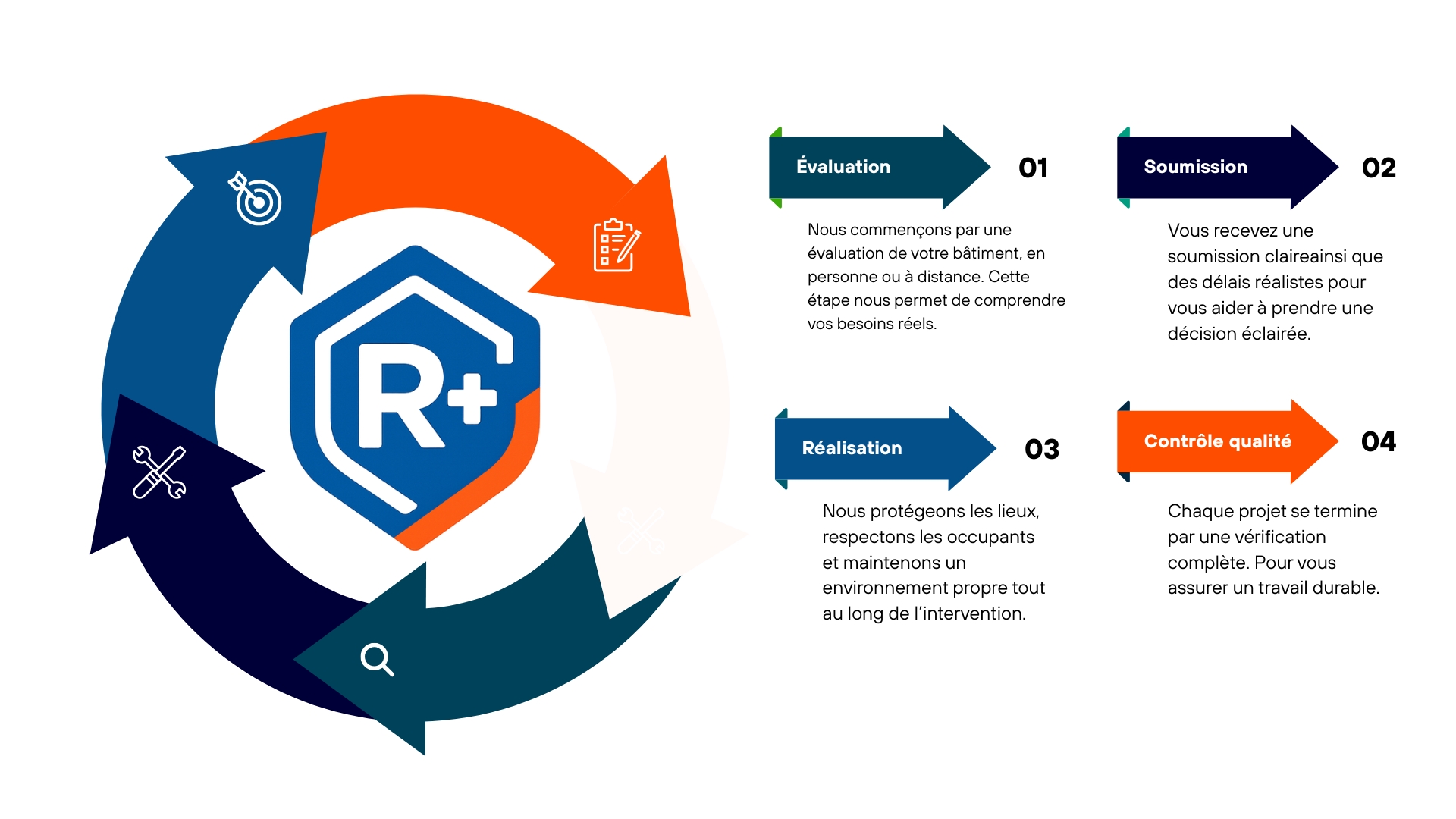 Chez Groupe Rplus, nous misons avant tout sur un diagnostic précis afin de vous proposer la solution adaptée à votre bâtiment jamais la plus coûteuse, simplement la plus efficace. Notre travail repose sur une qualité vérifiée, avec des matériaux certifiés et une installation réalisée selon les règles de l’art.